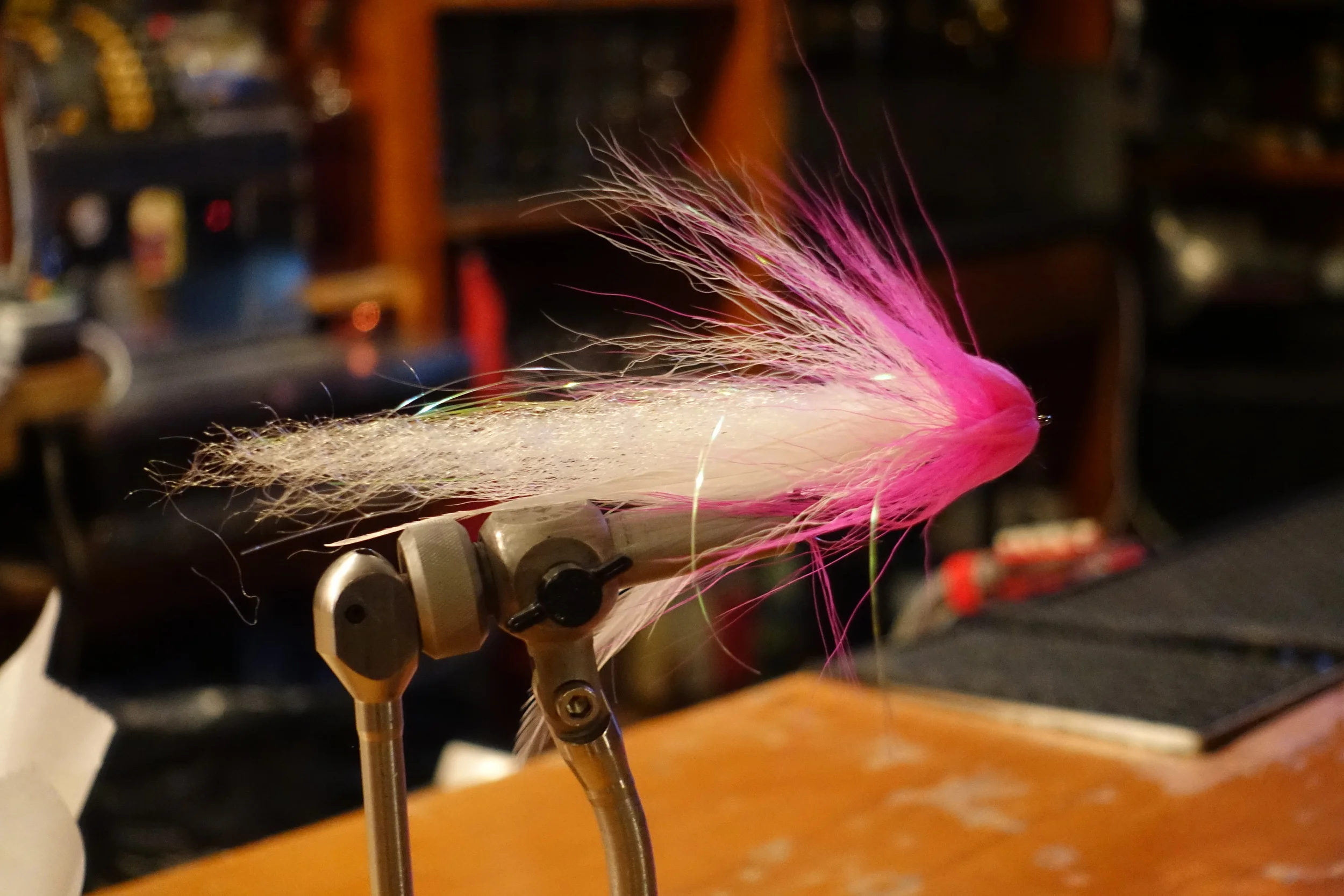 A couple of things you should know before going to Chi-tie. It’s dark in the bar, if something falls on the floor, leave it, unless it’s your expensive scissors, and if you have a light to attach to your vise, bring it. You’ll be glad you did. This is not your daddy’s tying group, in other words, you bring what you want to tie, buy a beer at the bar and sit and tie and kibitz with those around you, get some popcorn, buy another beer. It’s that type of group. Like going to a buddy’s house to sit and tie and drink but now you’re at a bar where you meet new people, sit and tie and drink. If you’re new to tying, there’s enough experienced guys around to help you and always someone experimenting with something.